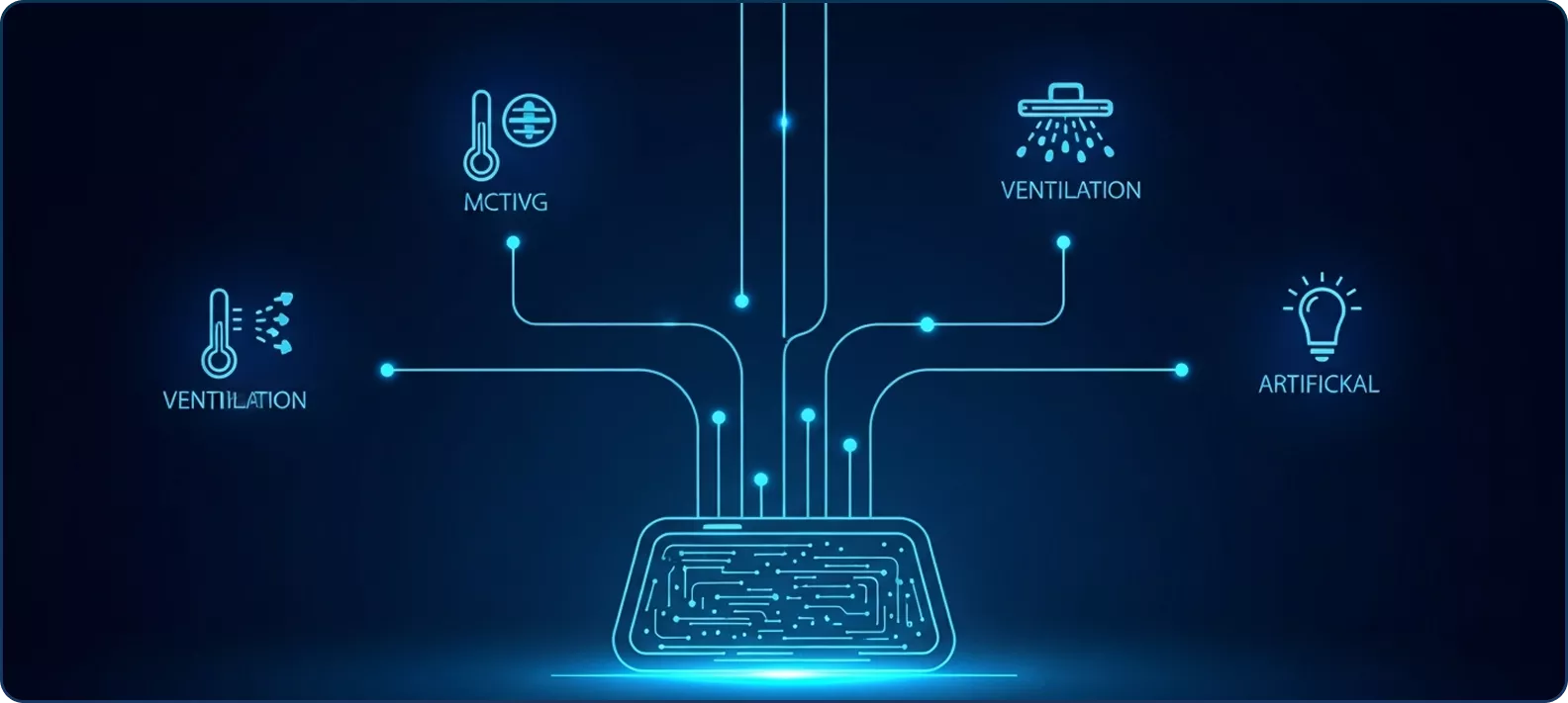 سیستمهای کنترل محیطیسیستمهایی که با دریافت دادهها از حسگرها، میتوانند بهطور خودکار دما، تهویه، میزان نور مصنوعی و حتی مهپاشها را تنظیم کنند.